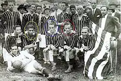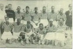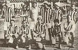 O Athlético Mineiro Football Club foi fundado em 25 de março de 1908 por um grupo de estudantes de classe média em Belo Horizonte.[39] Quase um ano após seu surgimento o Atlético disputou sua primeira partida oficial: em 21 de março de 1909 venceu o Sport Club Foot-Ball por 3–0. O autor do primeiro gol foi Aníbal Machado.[40] Em 1912, mudou a grafia do nome para a atual: Clube Atlético Mineiro.[39] Em 1914 a Liga Mineira de Esportes realizou a primeira competição oficial em Minas Gerais: a Taça Bueno Brandão.[carece de fontes] O torneio foi patrocinado pelo governador Júlio Bueno Brandão e teve o Atlético como campeão.[41][42] No ano seguinte, foi realizado o primeiro Campeonato Mineiro da história, também vencido pelo Atlético.[carece de fontes] As duas grandes conquistas não significaram o prenúncio de uma hegemonia, pois foi o América Futebol Clube o dominador do futebol local por aqueles anos conquistando dez campeonatos estaduais consecutivos (1916 a 1925). Também foi por essa época que Atlético e América passaram a protagonizar o Clássico das Multidões.