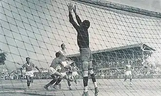 No final da década de 1930 o Atlético —que tinha Kafunga,[48] Zezé Procópio[49] e Guará[50]— conquistou os títulos do Campeonato Mineiro de 1936, 1938 e 1939; os primeiros na fase profissional do futebol brasileiro.[51] Por esse tempo a rivalidade entre Atlético e Cruzeiro transformou-se no Clássico Mineiro. As décadas de 1940 e 1950 foram ainda mais gloriosas para o clube: em 20 anos o time conquistou 12 campeonatos —incluindo um pentacampeonato (1952 a 1956)— graças a craques como Murilo Silva, Bigode, Mexicano,[52] Barbatana,[53] Zé do Monte,[54] Alvinho, Nívio Gabrich, Vaguinho, Carlyle, Orlando, Ubaldo Miranda, Paulo Valentim e Lucas Miranda,[55] entre muitos. As duas décadas seguintes não foram tão prósperas: de 1960 a 1978 o Atlético conquistou apenas os títulos do Campeonato Mineiro de 1962, 1963, 1970 e 1976; no time estiveram nomes como Veludo, Mussula, Marcial de Mello, Djalma Dias, Procópio Cardoso, Grapete, Vanderlei Paiva, Ronaldo, Buglê,[56] Buião, Lola, Dadá Maravilha e Tião,[57] além de técnicos como Fleitas Solich.