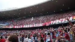 O Flamengo é o clube de futebol mais popular do Brasil,[18][19] com uma torcida estimada em 52 milhões de torcedores (26% da população brasileira)[20] espalhados por todas as regiões do Brasil.[21][22] Segundo levantamento conduzido pela agência de marketing desportivo Gerardo Molina-Euroamerica, o Flamengo é, em números absolutos, o clube de futebol com o maior número de seguidores em todo o mundo.[23][24] Em razão da força de sua torcida, é o clube brasileiro que mais recebe valores de direitos de transmissão.[25] Desde 2018, o Flamengo é considerado o clube mais valioso do Brasil,[26] tornando-se em 2019, o time mais valioso da América do Sul, além de ser o 70º clube de futebol mais valioso do mundo, avaliado em mais de 145,7 milhões de euros.[27] Um Fla-Flu detém o recorde mundial de público de partidas entre clubes: 194 603 espectadores, na final do Campeonato Carioca de 1963, vencido pelo Flamengo após um empate sem gols.[28][29][30]