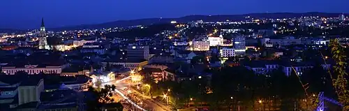 Cluj-Napoca (pronúncia em romeno: AFI: /'kluʒ na'poka/ ⓘ; em alemão: Klausenburg, aportuguesado para Clausemburgo;[8] em húngaro: Kolozsvár; em latim: Napoca, Castrum Clus ou Claudiopolis; em iídiche: קלויזנבורג; romaniz.: Kloiznburg), até 1974 Cluj, nome ainda usado atualmente, é a terceira maior cidade da Romênia,[9] capital do județ (distrito) de Cluj, no noroeste da Transilvânia. Geograficamente, está situada a uma distância igual das três principais capitais nacionais da região, Bucareste (498 km), Budapeste (354 km), e Belgrado (327 km). A cidade se localiza no vale do rio Someșul Mic e também é a capital da província histórica da Transilvânia.[7]