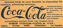O empresário Asa Griggs Candler acreditava no produto e queria que a Coca-Cola fosse conhecida. Naquela época, não existiam meios de comunicação nacionais e, a grande maioria dos consumidores encontrava-se isolados nas pequenas cidades do interior que visitavam as grandes cidades. Uma das formas encontradas foi contratar pessoas para distribuir cupons que davam o endereço e um brinde, experimentar de graça a Coca-Cola, fazendo com que os estabelecimentos fossem procurados.[7] Candler também acaba disponibilizando outros brindes nos estabelecimentos, como calendários e posters que serviam como uma forma dos consumidores olharem para o nome da Coca-Cola e lembrar onde compraram.[7]