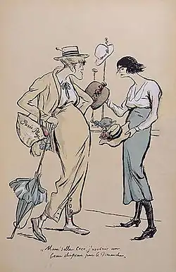 Gabrielle Bonheur "Coco" Chanel ([ʃəˈnɛl] shə-NEL, francês: [ɡabʁijɛl bɔnœʁ kɔko ʃanɛl] (ⓘ); Saumur, 19 de agosto de 1883 – Paris, 10 de janeiro de 1971)[2] foi uma estilista e empresária francesa. Fundadora da marca Chanel, ela foi creditada na era pós-Primeira Guerra Mundial por popularizar um chique esportivo e casual como o padrão feminino de estilo. Isso substituiu a "silhueta de espartilho" que era dominante de antemão com um estilo mais simples, muito menos demorado para colocar e remover, mais confortável e mais barato, tudo sem sacrificar a elegância. Ela é a única estilista listada na lista da revista Time das cem mais pessoas influentes do século XX.[3] Uma prolífica criadora de moda, Chanel estendeu sua influência além das roupas de alta-costura, realizando seu design estético em joias, bolsas e fragrâncias. Seu perfume exclusivo, Chanel Nº 5, tornou-se um produto icônico, e a própria Chanel desenhou seu famoso monograma CC-intertravado, que está em uso desde a década de 1920.[4]