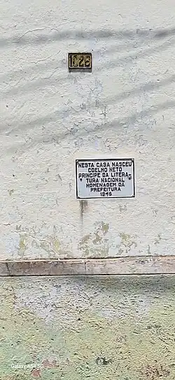 Placa indicativa na casa onde nasceu o poeta Coelho Neto, em Caxias (MA). Sede do Centro Artístico e Operário Caxiense.