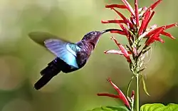 Nesse meio podemos destacar a relação entre as flores ornitófilas e os beija-flores, que por meio de uma associação mutualista atua como importante agente polinizador. A ornitofilia possui suas principais características como as flores com tonalidade vermelha, tubulares, alta produção de néctar com concentração de açúcares mediana de uma maneira intimamente ligada as necessidades dos beija-flores, de forma que contribui para a alta eficiência da polinização.[27]
