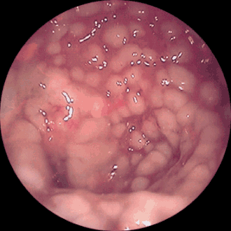 | Endoscopia do cólon com colite pseudomembranosa | |