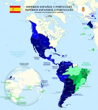 A colonização portuguesa da América é marcada pela criação das capitanias hereditárias.[nota 2] Em contraste a fragmentação das possessões espanholas vizinhas, as colônias portuguesas na América formaram uma unidade e integridade territorial linguística após a independência, dando origem ao maior país da região.[carece de fontes?]
