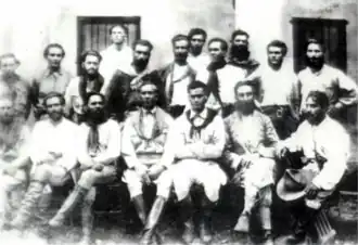 ![]() Comando da Coluna. Luís Carlos Prestes é o terceiro sentado, da esquerda para a direita | |||