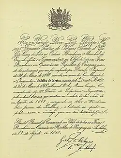 Documento de 1869 assinado pelo Conde D'Eu no comando em chefe das forças da Guerra do Paraguai.