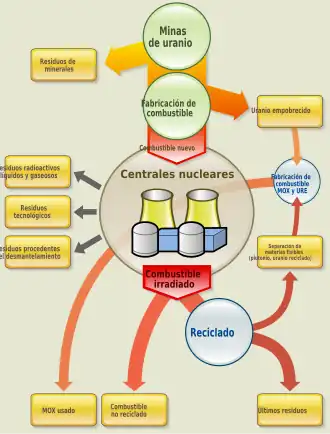 Os processos de produção do combustível nuclear, que englobam a mineração, refinação, purificação, sua utilização e o tratamento final de resíduos, formam em seu conjunto o denominado ciclo do combustível nuclear.