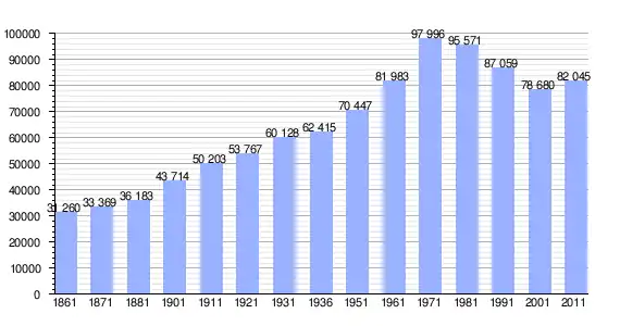 | Variação demográfica do município entre 1861 e 2011[2] |