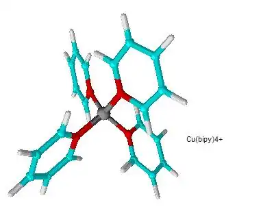 Estereoquímica do complexo é a relação espacial entre um íon metálico central e seus ligantes. A estereoquímica pode ser agrupada de acordo com o número de coordenação (NC) da espécie central; no caso o número de coordenação 4 significa que possuímos um íon central ligado a mais quatro elementos, iguais ou diferentes entre si. Moléculas de íons poliatômicos que possuem a mesma fórmula molecular, mesmas ligações, mas diferentes estruturas e arranjos espaciais são chamados de estereoisômeros. A distribuição dos ligantes ao redor do íon central está coordenada de acordo com a repulsão mútua entre os ligantes e o impedimento estérico dos ligantes polidentados. O arranjo dos ligantes ao redor do íon central é influenciado por: