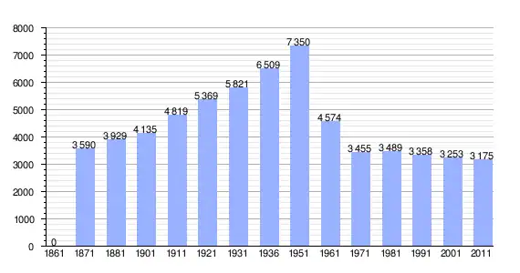 | Variação demográfica do município entre 1861 e 2011[3] |