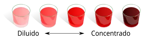 Para que seja considerada uma solução é necessário que o solvente, geralmente um líquido, separe as partículas de soluto, tal processo é chamado de dissolução. A partir disto, falamos em concentração, quanto mais partículas de soluto são envolvidas pelo solvente por unidade (mL, L, g, kg), mais concentrada é a solução e quanto menos partículas de soluto estão dissolvidas pelo solvente, menos concentrada é a solução.[1]