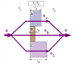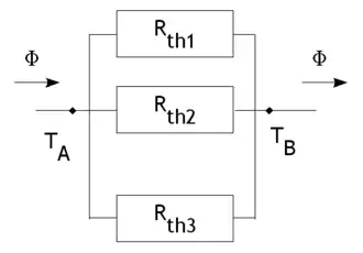 e é a resistência que é aditiva quando várias camadas condutivas situam-se entre as regiões quente e fria, porque e são as mesmas para todas as camadas. Em uma partição de multicamadas, a condutância total está relacionada com a condutância de suas camadas por: