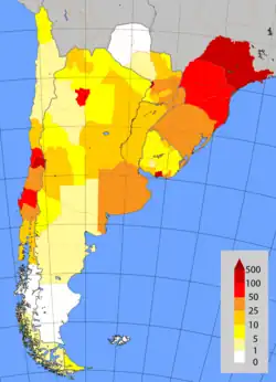 Na Argentina, a herança europeia é a predominante, mas com significativa herança indígena, e presença de contribuição africana também. Um estudo genético, realizado em 2009, revelou que a composição da Argentina é 78,50% europeia, 17,30% Indígena, e 4,20% Africana.[17] Em Buenos Aires, um estudo genético encontrou contribuição indígena de 15,80% e africana de 4,30%.[18] Na região de La Plata, as contribuições europeia, indígena e africana foram, respectivamente, 67.55% (+/-2.7), 25.9% (+/-4.3), e 6.5% (+/-6.4).[19] Quanto à população de Mendoza, um estudo genético encontrou a seguinte composição autossômica (DNA herdado tanto por parte de mãe quanto por parte de pai e que permite inferir toda a ancestralidade de um indivíduo): 46,80% de ancestralidade europeia, 31,60% indígena e 21,50% africana.