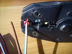 Os contatos crimpados são permanentes (ou seja, os conectores e as extremidades dos fios não podem ser reutilizados).[39]