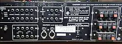 Este painel traseiro de um amplificador integrado apresenta uma variedade de conectores elétricos