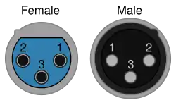 Conector XLR, mostrando o entalhe para alinhamento