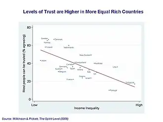O grau de confiança entre duas pessoas ou mais, é determinado pela capacidade que elas têm de prever o comportamento uma da outra, dentro de uma nação. Tem como base experiências passadas que corroboram um padrão esperado, valores compartilhados percebidos como compatíveis. Também é "a expectativa que nasce no seio de uma comunidade de comportamento estável, honesto e cooperativo, baseado em normas compartilhadas pelos membros dessa comunidade". Quando isso ocorre, tenho condições de prever o comportamento do outro em uma dada circunstância. Confiança é previsibilidade do comportamento e bem-estar de um país-nação.