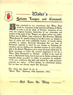 O Pacto de Ulster foi emitido em protesto contra a Terceiro Lei do Auto Governo, em setembro de 1912.
