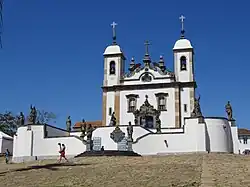 Em 1755 chega a Congonhas o mineiro Feliciano Mendes, vindo de Portugal, em busca de ouro.[17] Em 1757, após uma doença grave, Feliciano Mendes realiza uma promessa de criar um santuário em devoção ao Bom Jesus de Matozinhos (devoção vinda do norte de Portugal). Com autorização do Rei de Portugal, foram iniciadas as obras do Santuário do Bom Jesus de Matosinhos, com verba obtida da doação da fortuna adquirida do ouro de Feliciano Mendes e esmolas obtidas pelo mesmo usando um oratório, onde ele e um escravo perambulavam vilas a arraiais da região em busca de conseguir pagar a promessa. Feliciano faleceu alguns anos após se iniciar as obras. Contribuíram com grandes quantias Francisco de Lima; Manuel Rodrigues Coelho, Bernardo Pires da Silva, de modo que se começou a nave central da igreja; em 1787 foi colocada diante do altar-mor a imagem do Cristo morto; custódia e vasos sacros de prata foram encomendados ao ourives Felizardo Mendes. De 1769 a 1772 trabalhou ali o mestre João de Carvalhais, recebendo 32 oitavas «à conta da pintura do altar de Santo Antônio». Data de 1781 a última menção a Carvalhais: recebeu oito oitavas « de feitio de duas imagens de Cristo dos colaterais» para a igreja. No fim do Século XVIII foi contratado Antônio Francisco Lisboa, o Aleijadinho, para talhar 66 imagens em madeira de cedro com figuras da paixão de cristo. Em 1789 é dada a autorização do Papa Pio VI para o Jubileu do Senhor Bom Jesus de Matosinhos, entre 8 e 14 de setembro, oficializado no ano seguinte, é a mais antiga romaria de Minas Gerais. Em 1800, junto de seu ateliê, mesmo sofrendo com sua doença degenerativa, começou a esculpir 12 profetas da Bíblia em pedra-sabão (há teorias que os 12 profetas seriam retratos dos Inconfidentes Mineiros). É considerada sua obra-prima e o Santuário é a maior obra barroca das Américas. Em 1819 requisitaram-se os serviços do pintor Manuel da Costa Ataíde para restaurar pintura da capela-mor e a pintura das cenas da Paixão de Cristo nas 6 capelas dos passos. Nos anos 1970 recebeu uma grande intervenção paisagística comandada por Burle Marx. Em 1985 todo o complexo do Santuário foi declarado Patrimônio Mundial pela UNESCO. Em 2004, numa campanha da Globo Minas, o Santuário foi eleito a Imagem de Minas.