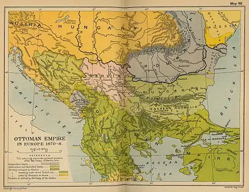 - Sérvia, Montenegro e Grécia se expandiram e criou-se o Principado da Bulgária, às expensas dos otomanos.