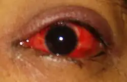 | Sintomas | Olho vermelho e irritado, comichão, secreções[1] |