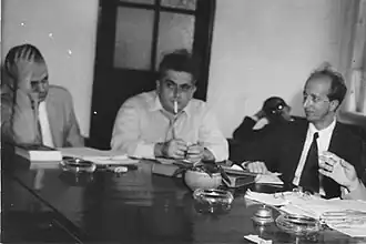 O paranaense César Lattes (esquerda) e os pernambucanos Mário Schenberg (centro) e José Leite Lopes (direita) — estes considerados os três maiores físicos brasileiros — em reunião no CNPq, 1958.