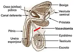 A vasectomia consiste em uma pequena cirurgia na altura das virilhas onde é feita a ligadura dos canais deferentes, os ductos que levam os espermatozoides produzidos nos testículos até o pênis. Após a cirurgia devem ser realizados exames para confirmar a ausência de espermatozoides no esperma, que ainda é produzido e ejaculado. A vasectomia não interfere na potência sexual e na produção dos hormônios sexuais nos testículos.
