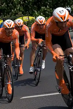 Nos contrarrelógios as bicicletas que são normalmente utilizadas chamam-se "cabras", rodas com raios espessos e soldados (roda dianteira da imagem) e rodas lenticulares (roda traseira).