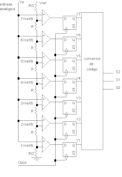 Os conversores tipo paralelo têm como circuito básico de entrada um pré-amplificador e um latch, que atuam juntos em uma configuração de circuito comparador. Na saída dos comparadores é necessária a colocação de um circuito de codificação que irá receber os sinais dos comparadores e codificar o sinal de saída em código binário (ou “GRAY”).