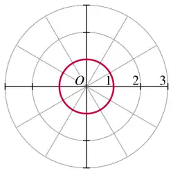 para um círculo com centro no polo e raio .[14] Quando , ou quando a origem se encontra no círculo, a equação se torna