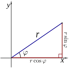 As coordenadas polares e podem ser convertidas para as coordenadas cartesianas e usando as funções trigonométricas seno e cosseno: