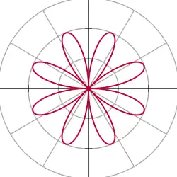 Uma rosa polar é uma famosa curva matemática que parece como uma flor petalada e que pode ser expressa com uma simples equação polar,