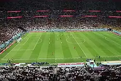 | 2022 FIFA World Cup بطولة كأس العالم لكرة القدم 2022 (em abjad árabe) Kaʾs al-ʿālam li-kurat al-qadam 2022 (em alfabeto latino) Qatar 2022 | |