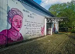 - Casa de Cora Coralina, juntamente com o busto e o poema que se encontra do lado direito da porta principal.
