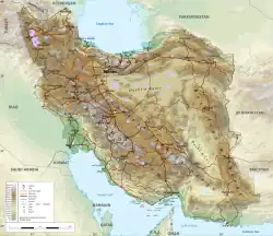 Mapa topográfico do Irão, com as montanhas de Zagros.