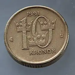 - ↑ «Krona» (em sueco). Enciclopédia Nacional Sueca. Consultado em 22 de abril de 2014
