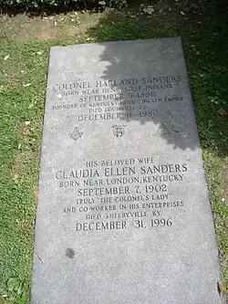 - ↑ Grundhauser, Eric (15 de maio de 2015). «Kentucky Fried Headstone: The Grave of Colonel Sanders». Slate. Consultado em 1 de dezembro de 2022