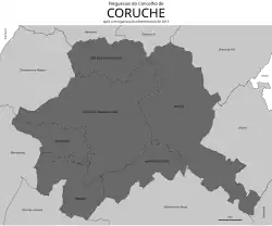 Desde 2023 que Coruche integra a região estatística (NUTS II) do Oeste e Vale do Tejo e na sub-região estatística (NUTS III) da Lezíria do Tejo, continua, no entanto, a fazer parte da Comissão de Coordenação e Desenvolvimento Regional de Lisboa e Vale do Tejo, que manteve a designação da antiga CCDR com o mesmo nome. Pertence ainda à província do Ribatejo, hoje, porém sem significado político-administrativo, mas constante nos discursos de auto e hetero-identificação cultural.