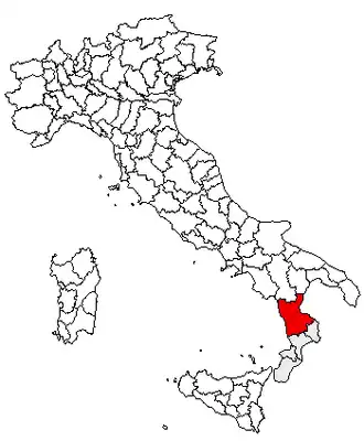Faz fronteira a norte com a Basilicata (província de Potenza e província de Matera), a este com o mar Jónico, a sul com província de Crotone e província de Catanzaro e a oeste com mar Tirreno.[2][3][4]