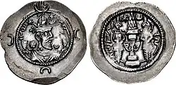 ![]() Efígie de Cosroes num dracma de seu reinado. | |||||