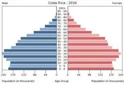 O censo de 2011 registrou uma população de 4 301 712 habitantes. Brancos, castizos e mestiços somam 83,63% da população, enquanto 1,05% são negros ou afro-caribenhos, 6,12% pardos, 2,4% nativos americanos, 0,2% chineses e 6,6% outros. Uma média de 67,5% tem ascendência europeia, 29,3% ameríndia e 3,2% africana.[40][41] Há também mais de 104 mil habitantes americanos ou indígenas nativos, o que representa 2,4% da população. A maioria deles vive em reservas isoladas, distribuídos em oito grupos étnicos: Quitirrisí (no Vale Central), Matambú ou Chorotega (Guanacaste), Maleku (norte de Alajuela), Bribri (Atlântico Sul), cabécar (Cordillera de Talamanca), Guaymí (sul da Costa Rica, ao longo da fronteira com o Panamá), Boruca (sul da Costa Rica) e Térraba (sul da Costa Rica).