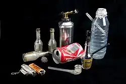 Para o consumo inalatório da droga, são utilizados cachimbos elaborados pelos próprios usuários, geralmente de alumínio e compartilhados entre o grupo de uso. Também tem sido comum o consumo de cigarros comuns ou de maconha com fragmentos de pedras de crack.[14] A forma injetável de cocaína não teve sucesso e foi quase extinta no Brasil, tendo sido substituída pelo crack, que provoca efeito semelhante e tão potente quanto o da cocaína injetada.[15]