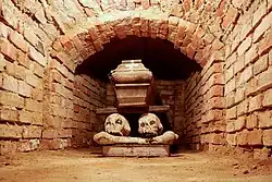 Venables, Edmund (1911). «Crypt». In: Chisholm, Hugh. Encyclopædia Britannica (em inglês) 11.ª ed. Encyclopædia Britannica, Inc. (atualmente em domínio público) This contains a description of various specific crypts in Europe. - ↑ Apollonj Ghetti, et al., eds. Eseguite negli anni 1940-1949 (Città del Vaticano, 1951) 1:173-93, anotado em Werner Jacobsen, "Saints' Tombs in Frankish Church Architecture" Speculum 72.4 (outubro de 1997:1107-1143) p. 1134 nota 70.