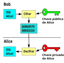 - Todo participante da comunicação tenha seu par de chaves único. A primeira chave que é exigida é a chave pública e a segunda chave que é exigida é a chave privada.