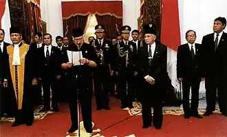 Em fevereiro de 1998, o presidente Suharto demitiu o diretor do Bank Indonesia, J. Soedradjad Djiwandono, mas isso se mostrou insuficiente. Em meio a tumultos generalizados em maio de 1998, Suharto renunciou sob pressão pública e o vice-presidente Jusuf Habibie o substituiu.