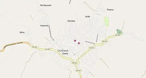 - ↑ «:: Site Oficial - Prefeitura Municipal de Crissiumal - RS | Conheça Crissiumal». Prefeitura Municipal de Crissiumal. Consultado em 16 de fevereiro de 2017