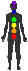 A filosofia New Age alega que cada um dos chacras é associado a uma cor do espectro da luz visível, junto com uma função e órgão ou sistema do corpo.[8] De acordo com essa visão, os chacras poderiam se desequilibrar e causar doenças físicas, mas a aplicação de cores apropriadas ajudariam a regular tais desequilíbrios.[9]