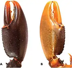 - ↑ Seed, R., and R.N. Hughes. 1995. Criteria for prey size-selection in molluscivorous crabs with contrasting claw morphologies. Journal of Experimental Marine Biology and Ecology 193:177–195.